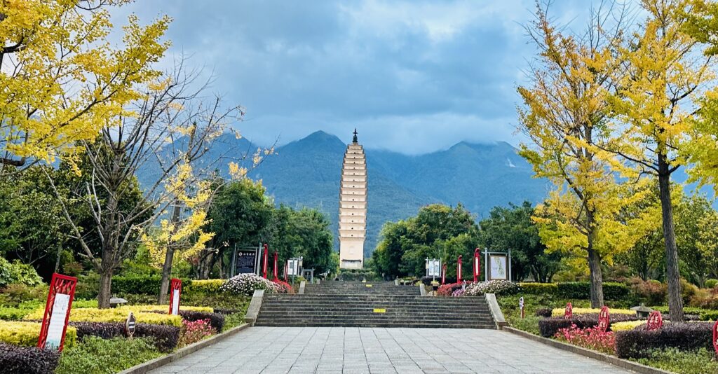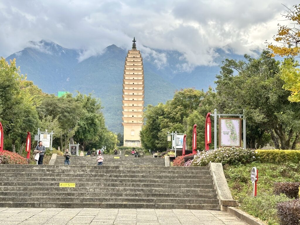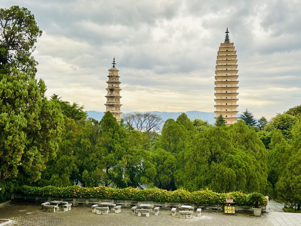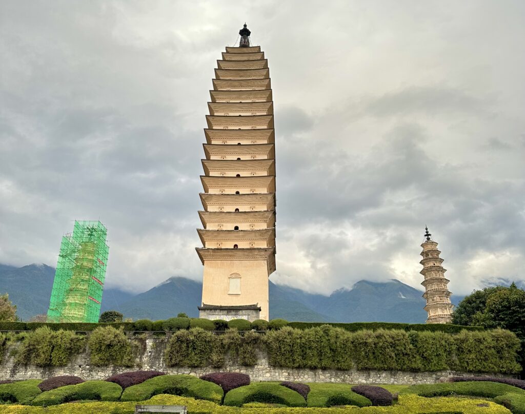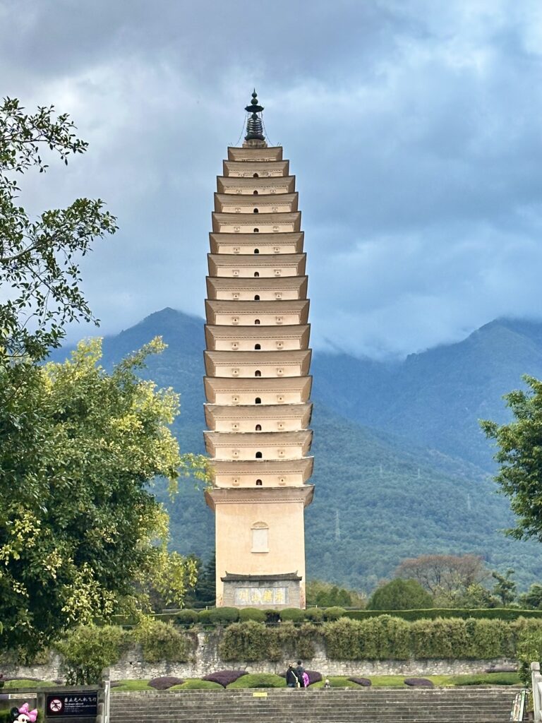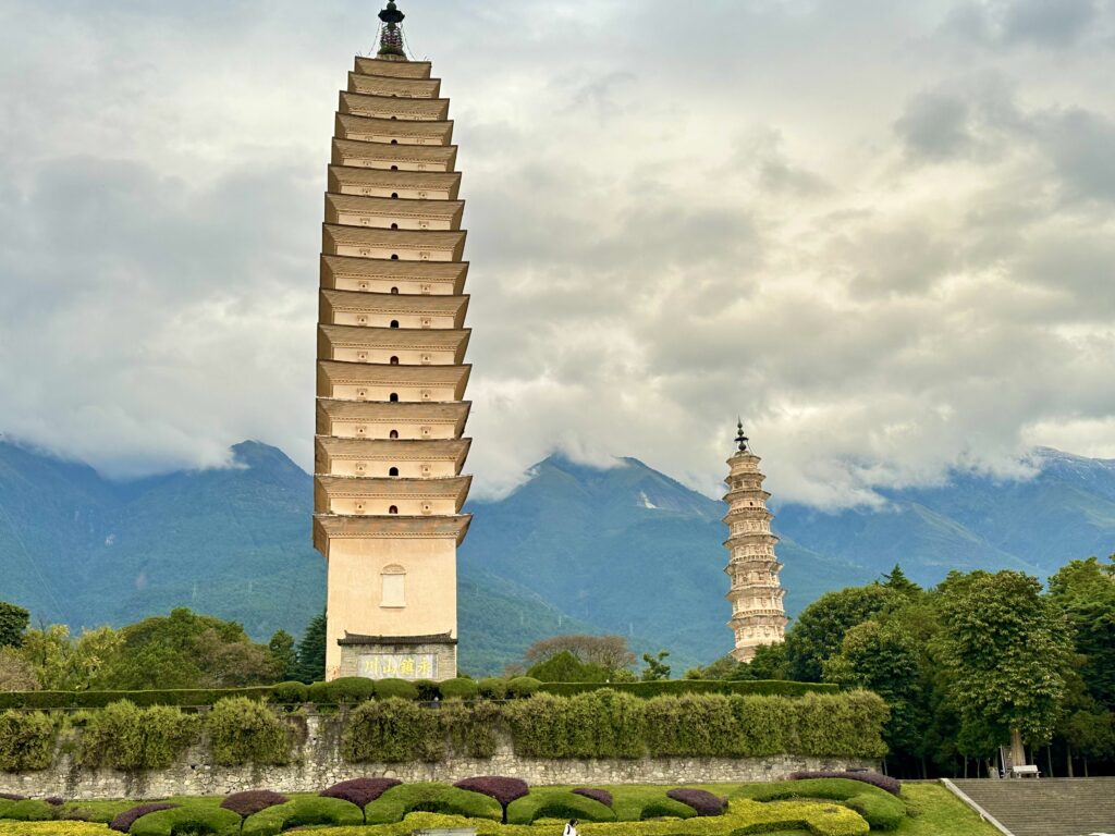 The Three Pagodas of Chongsheng Temple are famous Buddhist pagodas in southwest China. The main pagoda is about 42 metres high. It’s a sixteen-tiered, 10-metres square, originally built in the Tang Dynasty (around the 9th century).