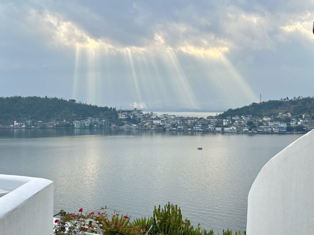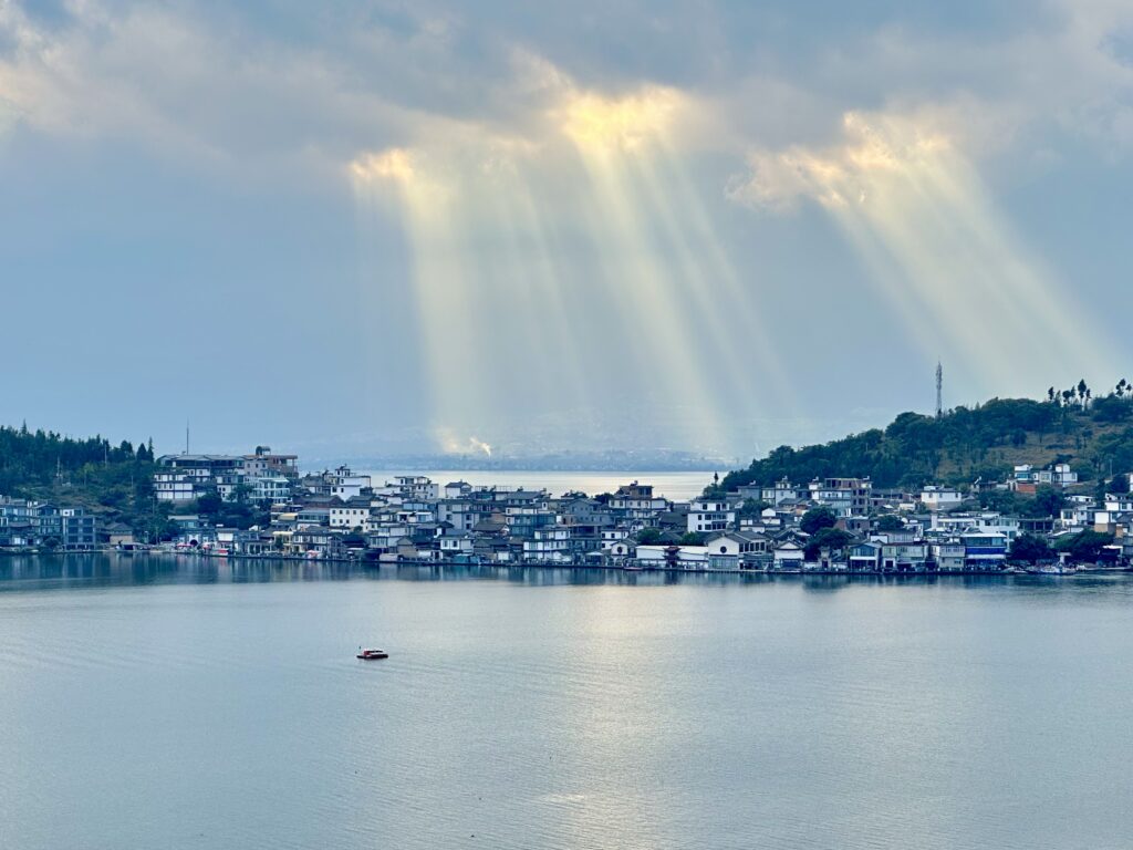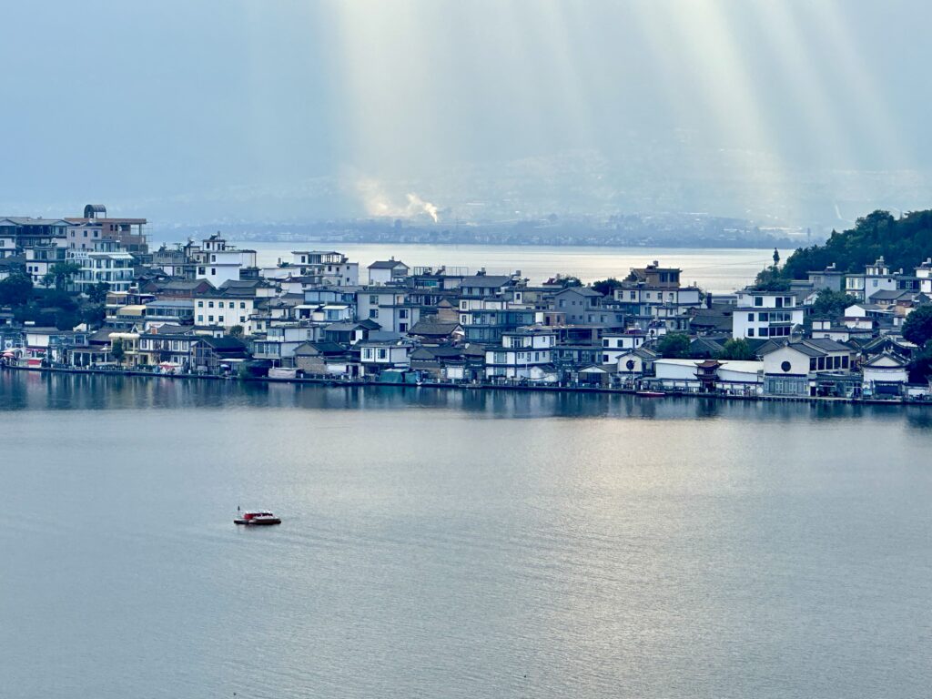 It looked nothing like an ancient Chinese town! The laid-back vibe and beautiful lakeside setting were so unexpected! The promenade was lined on one side with western restaurants and cafes and on the other side an amazing lakeside view; the almost unearthly light shining through the clouds had an atmospheric beauty all of its own!