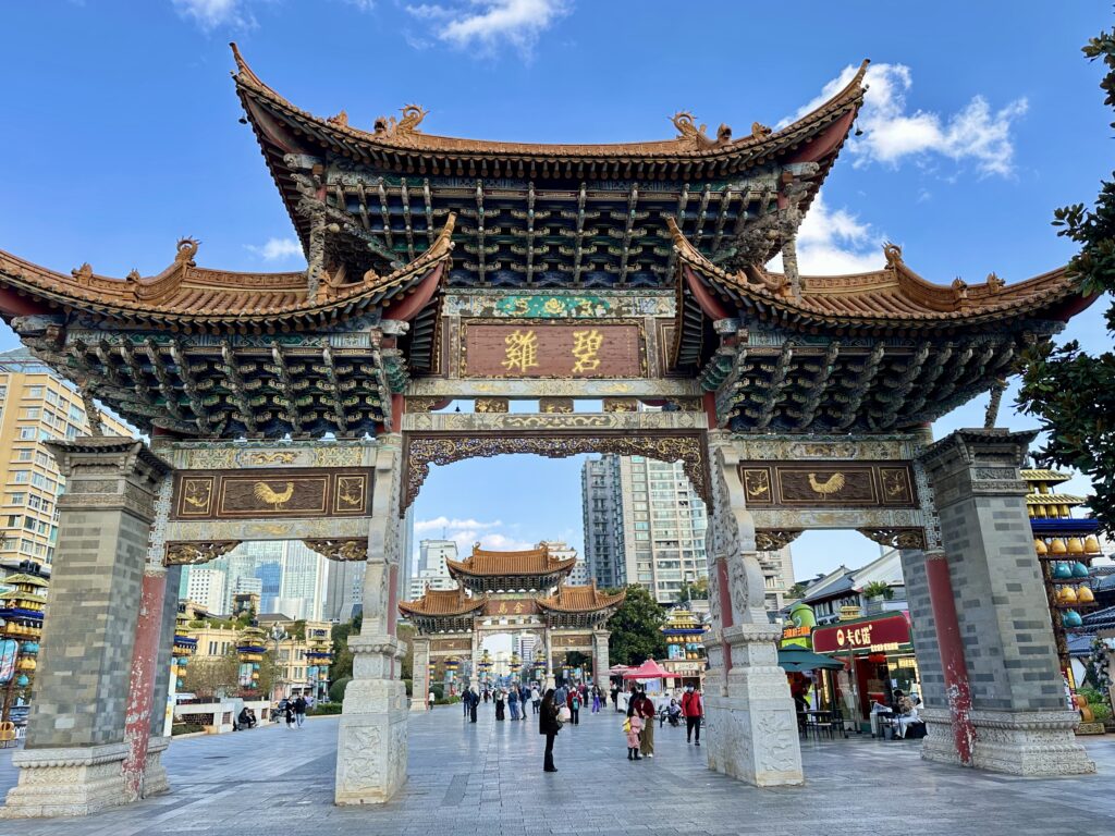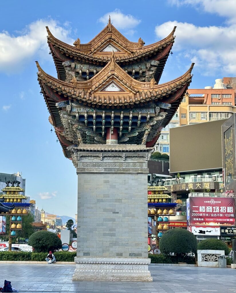 Jinbi Square is a historic and cultural gem in Kunming. It boasts a history of over 400 years, having been built during the Ming Dynasty era. The Square stands out against the backdrop of modern buildings, and a short walk from our hotel.