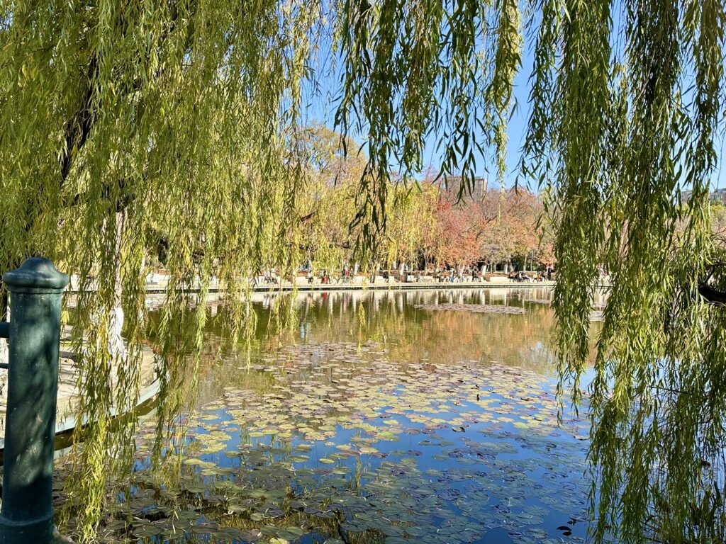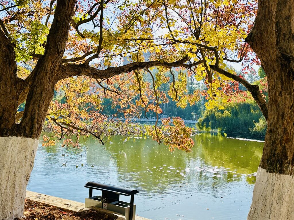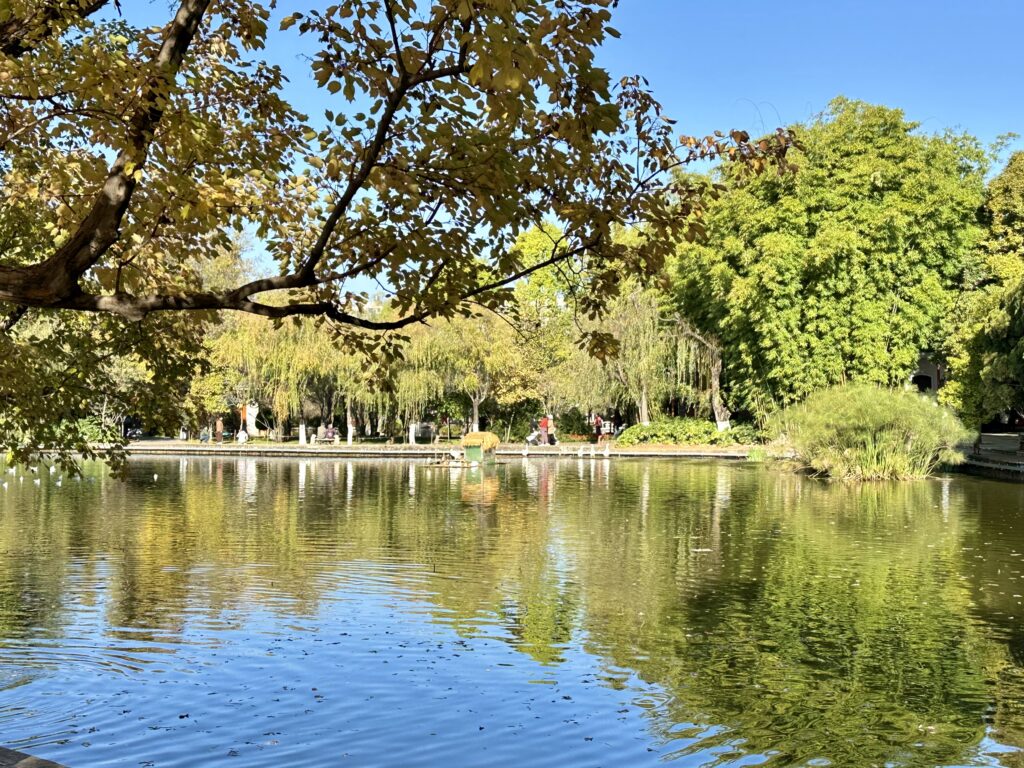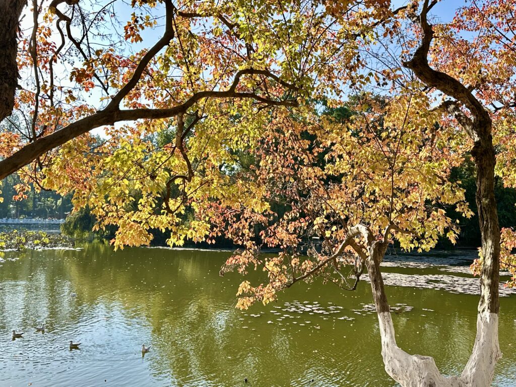 Finally, I managed to see some autumnal colours in China this year! It set my heart aglow to see trees of copper brown, saffron yellow and verdant green interspersing with weeping willows! So while others crowded around the pavilion, temple and seagulls, I happily wandered around the lake, marvelling at nature’s tapestry