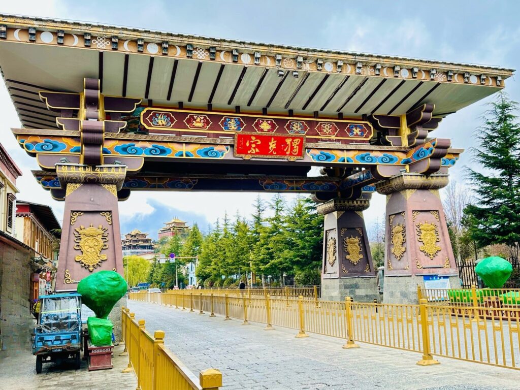 From the East Gate, it was a straight line down a street lined with shops on both sides to the ancient town. Through the ornate Chinese archway, two imposing structures were visible in a distance: the three-story Chaoyang Tower and the Tibetan Big Buddha Temple.